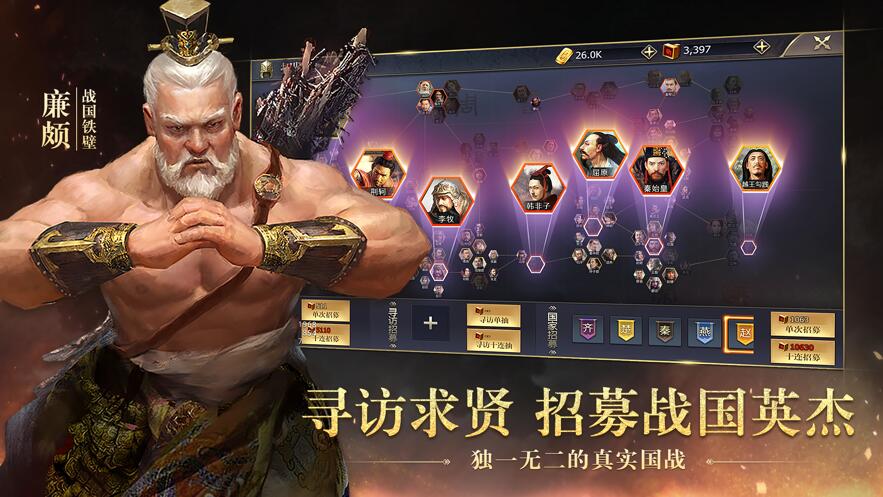 作为一款以战国时期为游戏背景的SLG游戏,在战国手游下载安装最新版中,共有十个势力,分别是齐、楚、燕、赵、韩、魏、秦、吴、越、周,地图上有着上百个不同大小的城池、数个南蛮出生点,以及各种各样的山贼强盗,玩家在战国手游下载安装最新版里是一个充满野心的小城池城主,玩家需要通过不断发育,获取各种各样的资源,来升级城池中的各种建筑,提升资源的获取速度,并且,在发育的同时,还要招募武将并组织军队,在这个危险的乱世之中,只有手握军队,才能够更好地保护好自己,并开启属于自己的传奇故事。