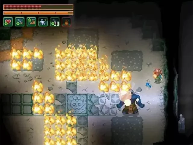 另外二阶段比较难打,最好的方法,就是多准备点药水,然后BOSS的话只会横着或者竖着攻击,你可以倾斜45度,然后绕圈,使用远程武器攻击,切记不要在边缘,否则的话就会重置BOSS,另外BOSS会放火,在地上的火攻击力不是很高,而BOSS的伤害高,如果实在是躲不了,踩火的话也可以做个取舍。