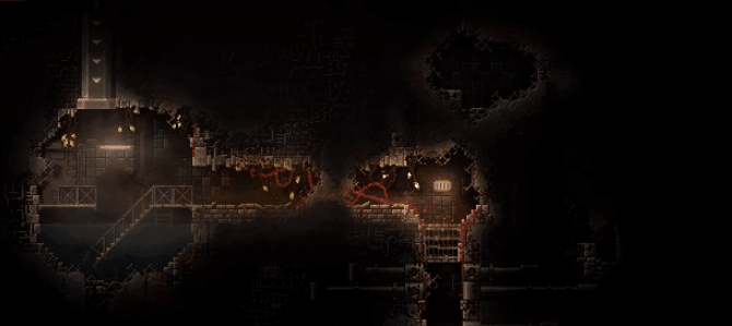 最重要的有一点是,游戏中的自相残杀大多是为了解谜,这在矿场后半段/植物园前半段表现得尤为明显。怪物需要通过吃人来获得生物质,从而在大小形态之间切换。大的可以敲开一些障碍物,小的可以喷出粘网。使用大型形式撞击障碍物/小型形式的拉杆几乎是所有解谜的核心部分。